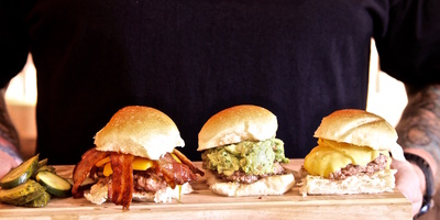 We also have sliders (mini burgers) and of course our infamous burgers too, all coming straight from the Griddle (flattop) Grill.